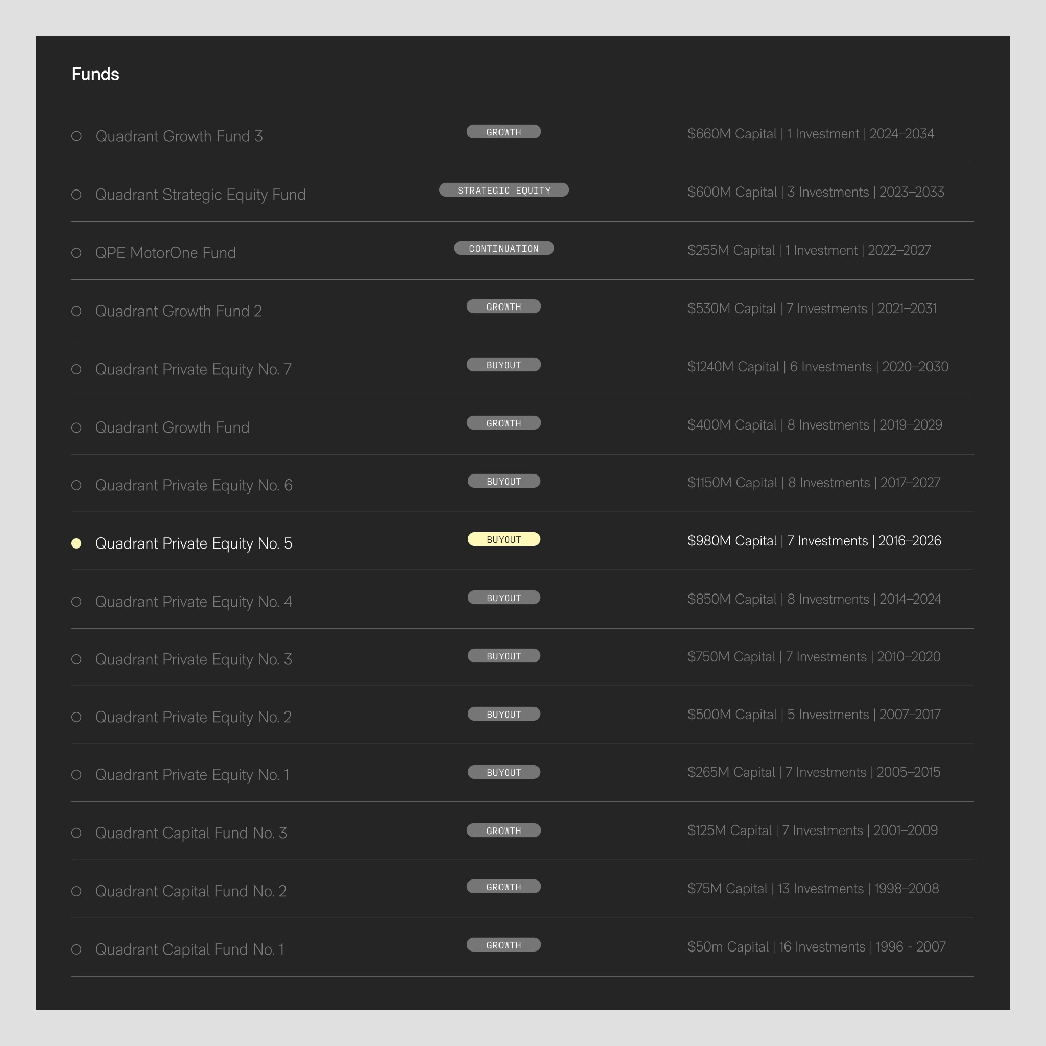For Quadrant Private Equity, Australia’s leading PE firm, we were engaged to redesign their website and evolve their communications strategy. The brief focused on modernising their visual language while maintaining the credibility of an established brand. We developed a refreshed design system, refined their logo, and delivered a digital experience that reflects their growth, values, and ongoing partnerships.